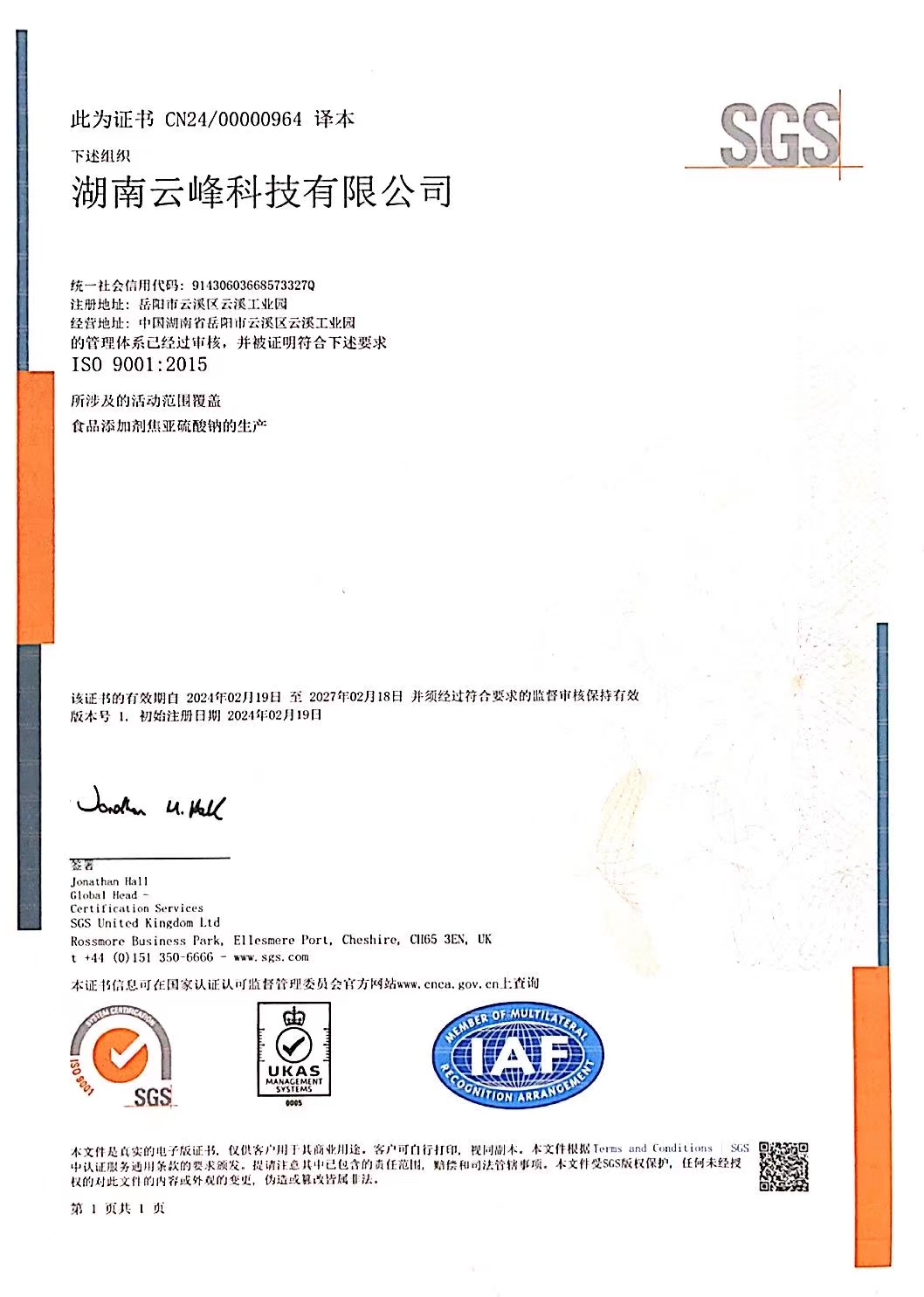 湖南云峰科技有限公司(以下簡稱云峰科技),是由長沙湘岳化工責(zé)任有限公司全額投資以生產(chǎn)焦亞硫酸鈉、亞硫酸鈉等亞硫酸鹽為主營業(yè)務(wù)的高科技企業(yè),具有六十多年的生產(chǎn)歷史,同時(shí)也是焦亞硫酸鈉的國家標(biāo)準(zhǔn)制定參與者。在行業(yè)內(nèi)具有很大的影響力。現(xiàn)有職工八十余人。具有優(yōu)良的經(jīng)營管理團(tuán)隊(duì)和成熟的生產(chǎn)技術(shù)隊(duì)伍。由多位在化學(xué)、化工行業(yè)擁有豐富工作經(jīng)驗(yàn)的工程師及技術(shù)員團(tuán)隊(duì)組建而成,致力于亞硫酸鹽產(chǎn)品的研發(fā)、生產(chǎn)和銷售。2020年公司對(duì)生產(chǎn)設(shè)備、安環(huán)設(shè)施及工業(yè)技術(shù)等進(jìn)行了大規(guī)模的升級(jí)改造,使焦亞硫酸鈉和亞硫酸鈉的生產(chǎn)工藝更加先進(jìn),技術(shù)更成熟,產(chǎn)品質(zhì)量更優(yōu)良。無論在生產(chǎn)工藝、設(shè)備、產(chǎn)品質(zhì)量、清潔生產(chǎn)、節(jié)能環(huán)保和員工素質(zhì)方面,均處于行業(yè)領(lǐng)先地位。公司的主導(dǎo)產(chǎn)品“云峰”牌焦亞硫酸鈉,歷史悠久,深受國內(nèi)外客戶信賴,產(chǎn)品遠(yuǎn)銷東南亞、歐美、非洲、南美洲等20多個(gè)國家和地區(qū),產(chǎn)品供不應(yīng)求。